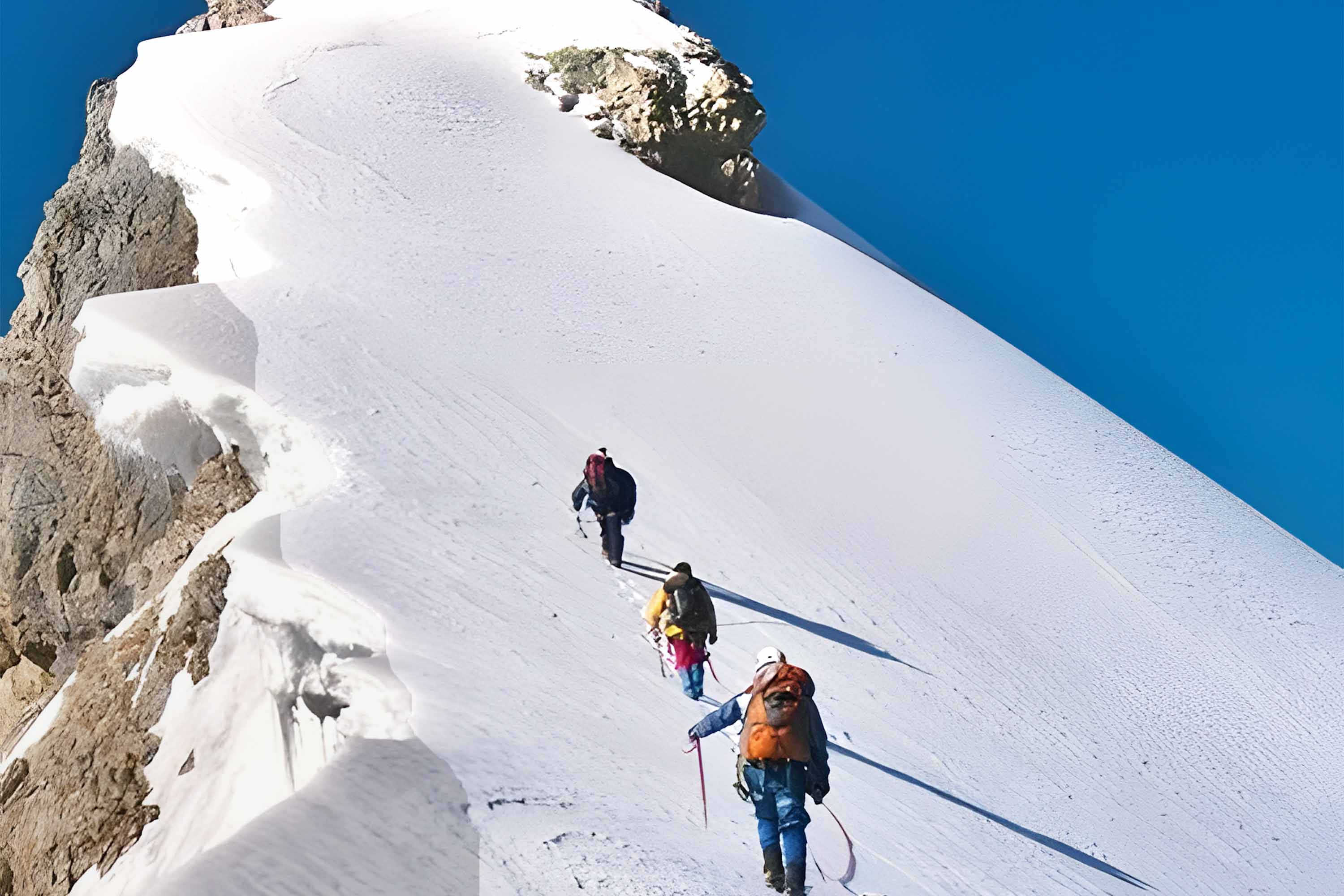 From the difficulty point of view and skill requirement, this expedition is out of reach for beginners. Prior climbing experience on alpine rock is needed because you have to be comfortable using crampons, ice axes, and ascenders/descenders.