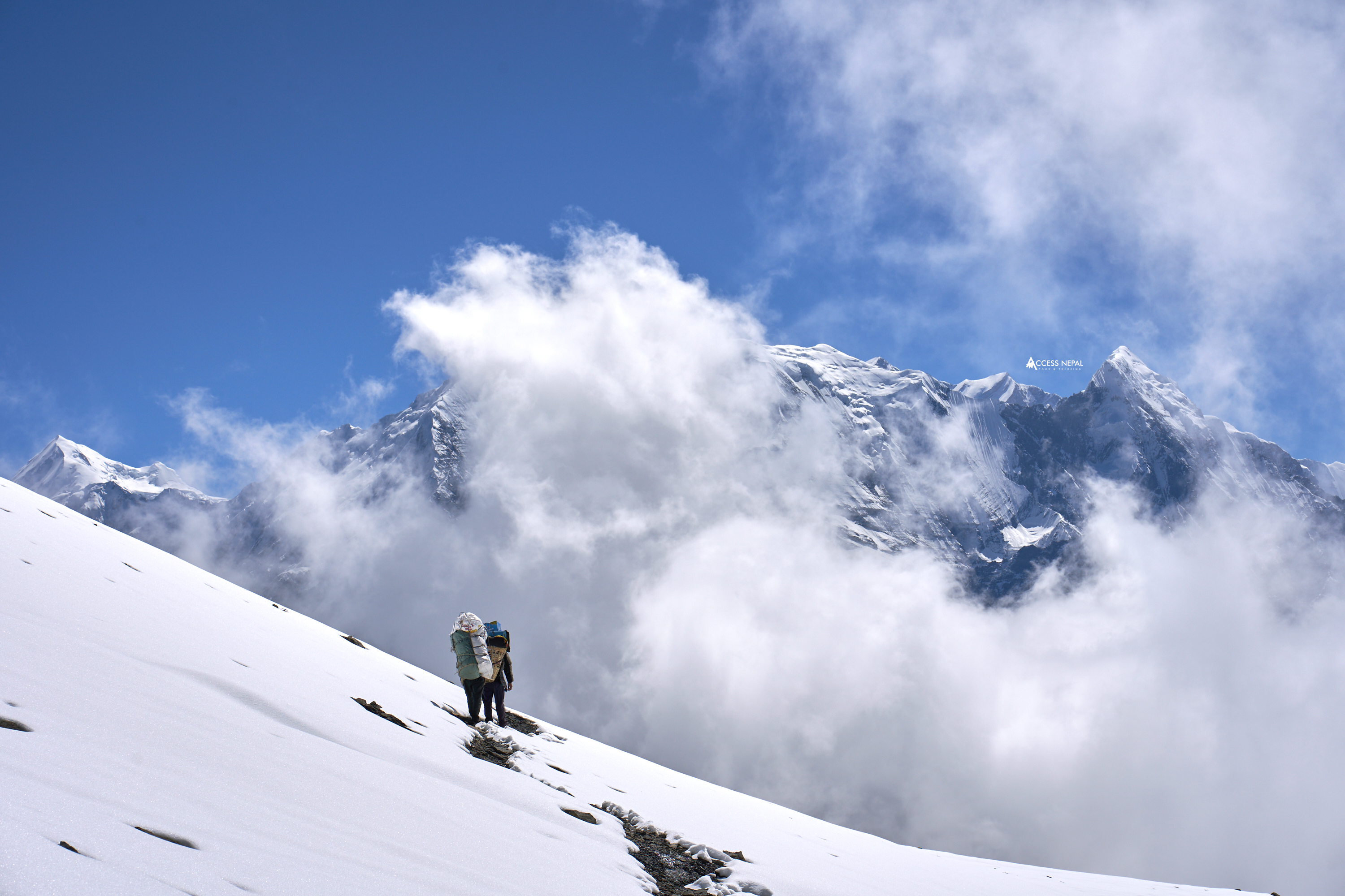 Since the Dhaulagiri Circuit trek goes above 5000m, heavy snowfall can occur, mostly there are chances of covering ridges and steep segments. Freezing cold makes the journey harder.