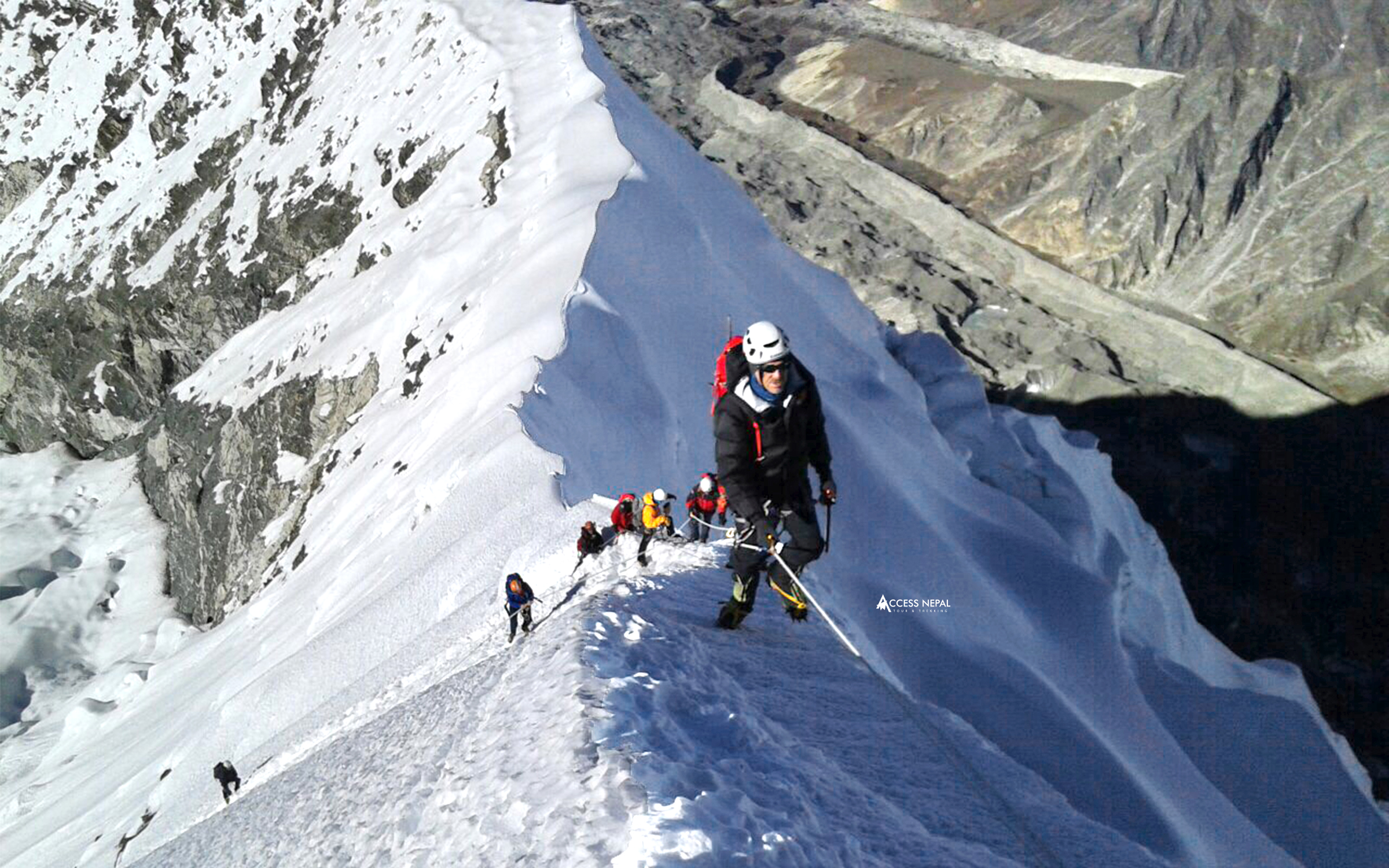- Island Peak Climbing on with crampons and fixed ropes over snow and ice.