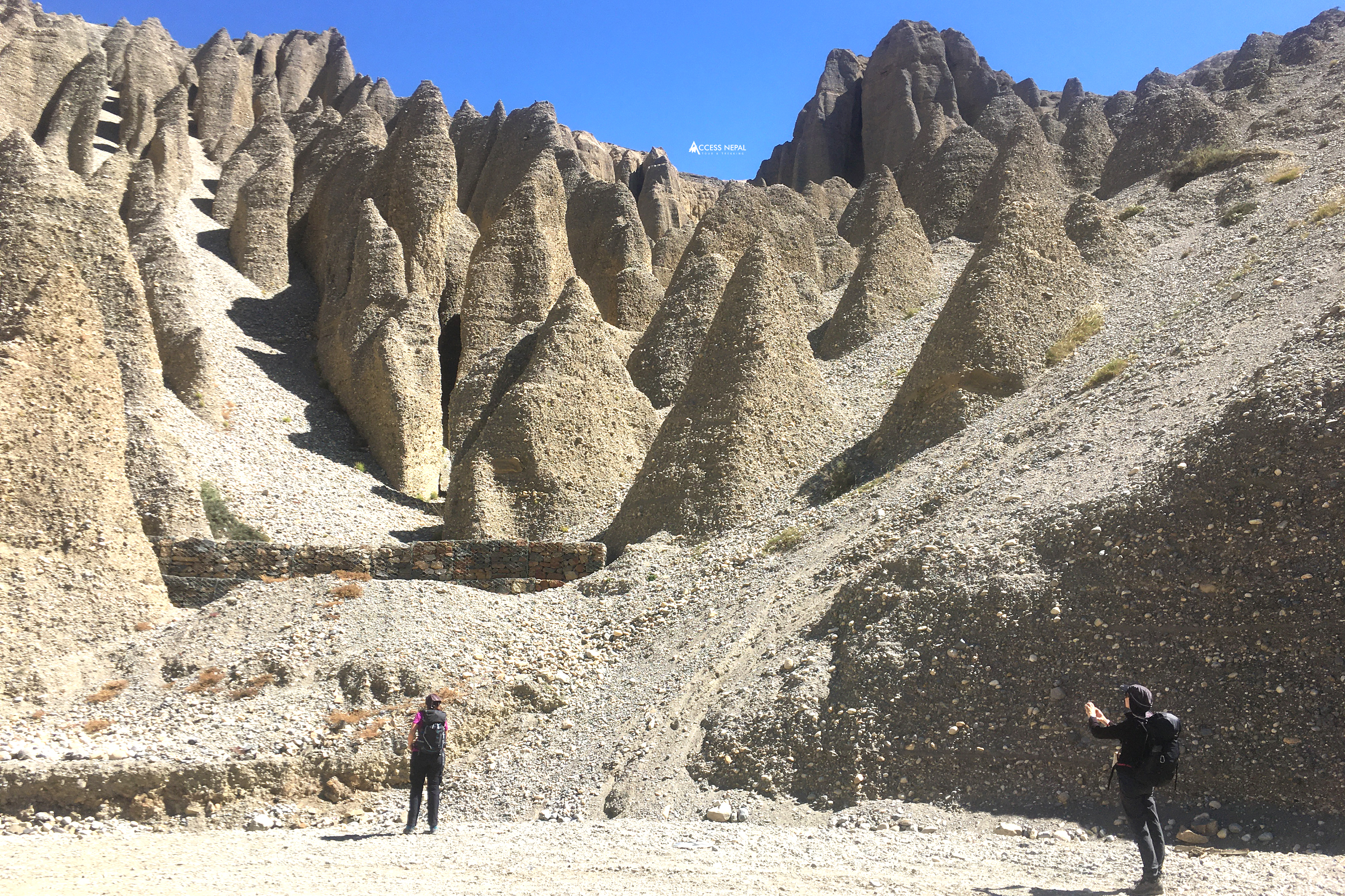- Unique Landscape: The Upper Mustang region lies beyond the Annapurna and Dhaulagiri ranges in Northern Nepal. The rain shadow region thus formed is characterized by barren, desert-like terrain, deep gorges, caves, and towering cliffs.